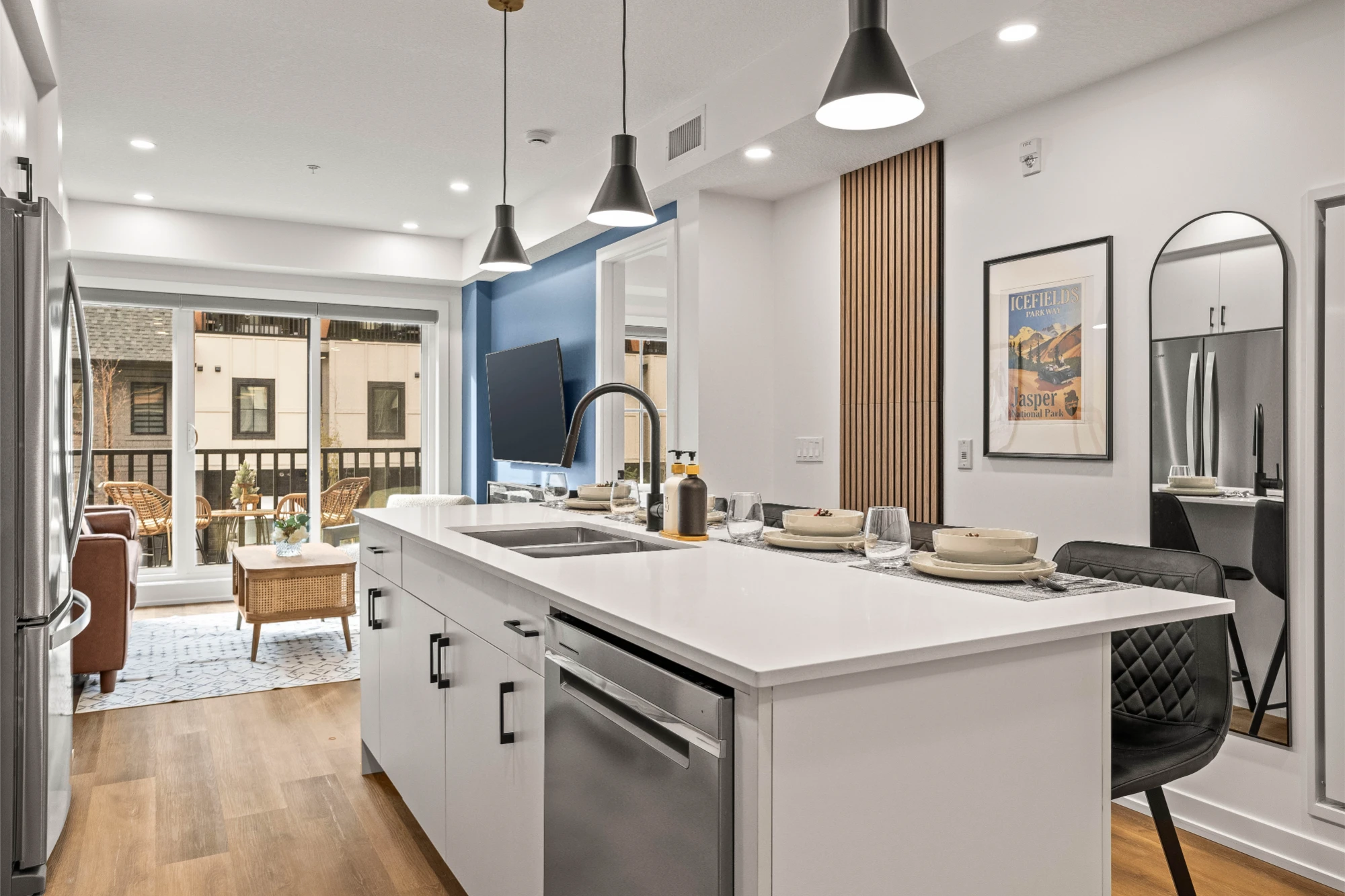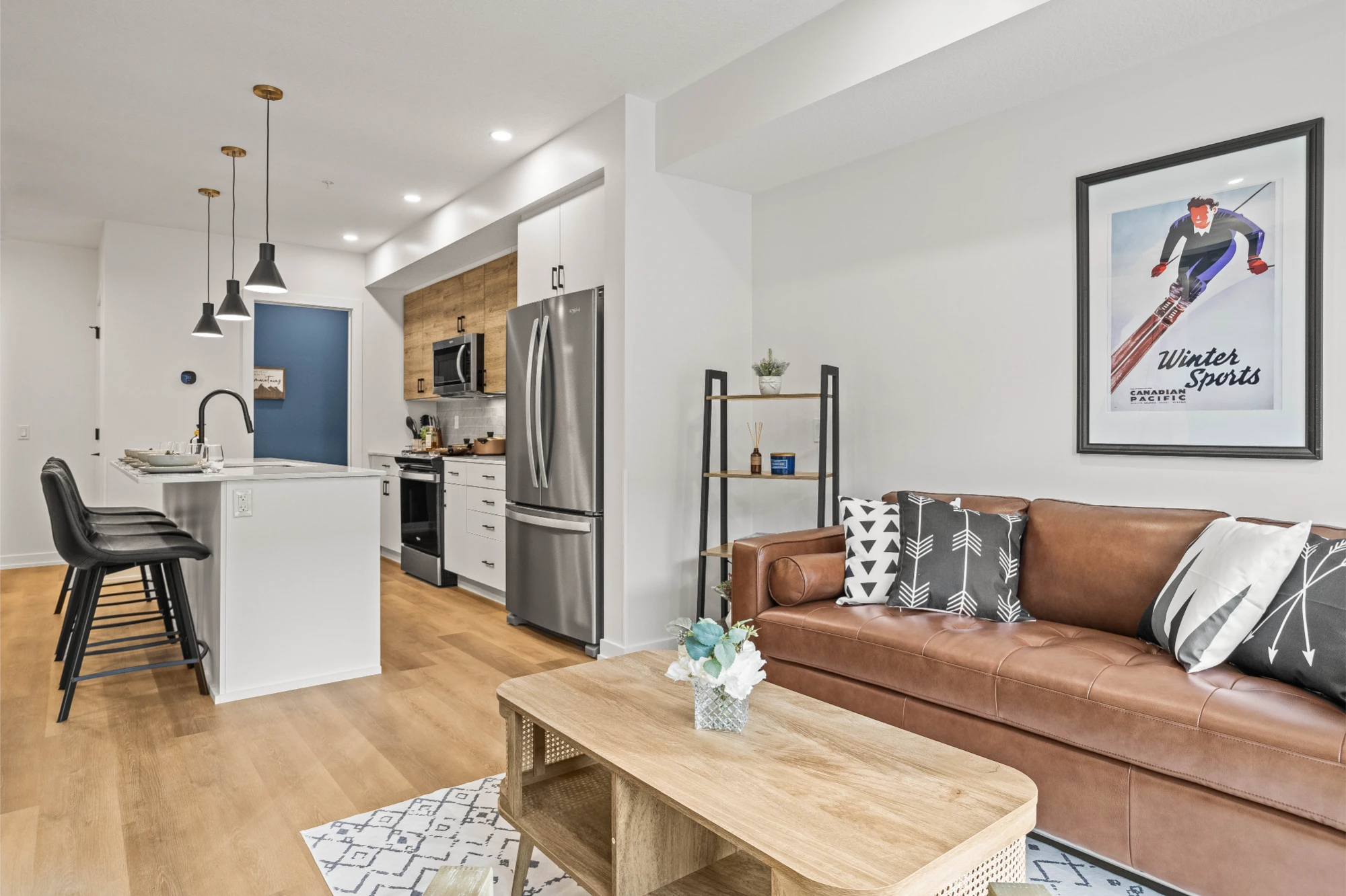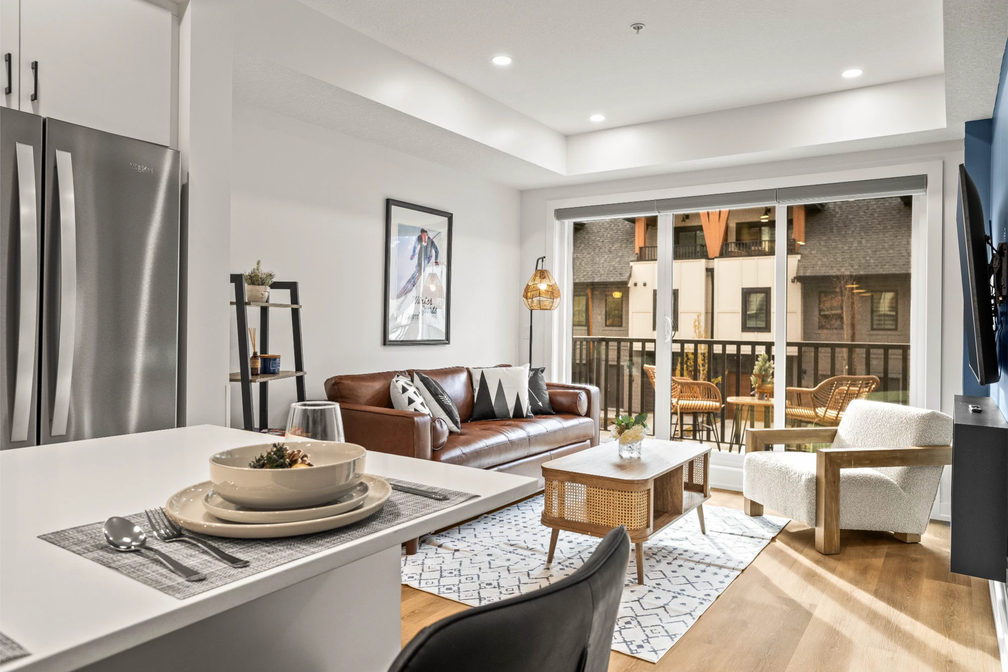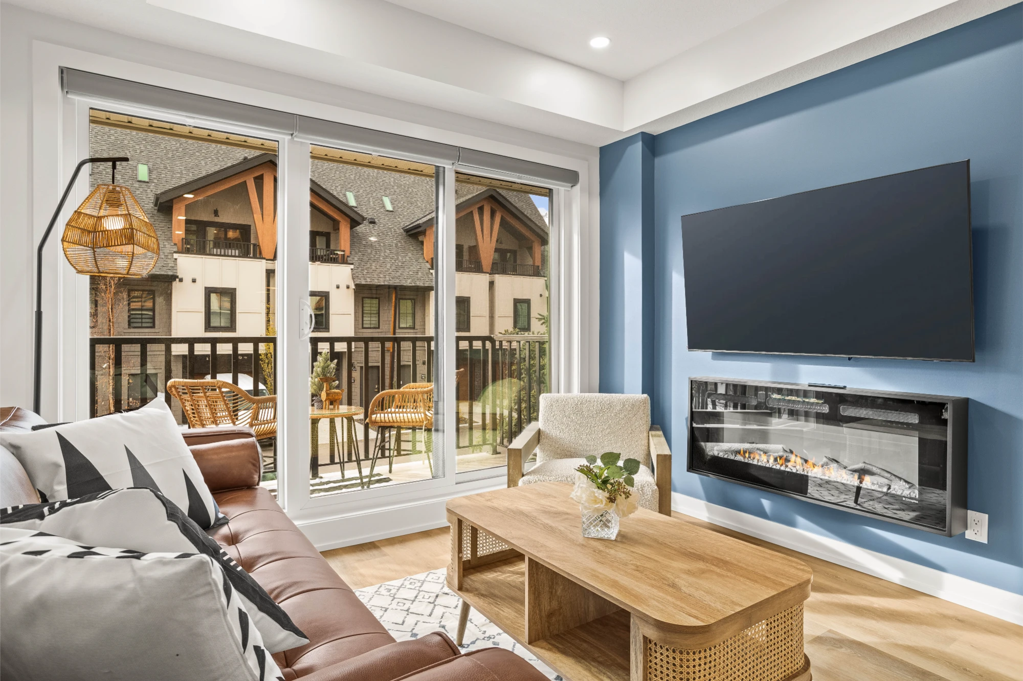 Perfect for couples or small groups looking to unwind in the heart of Canmore. With warm finishes, an inviting fireplace, and an open living area that extends to a private balcony, this suite feels like a true mountain retreat. Take in the breathtaking views, enjoy a slow morning coffee, or relax after a day exploring Banff and the Bow Valley.