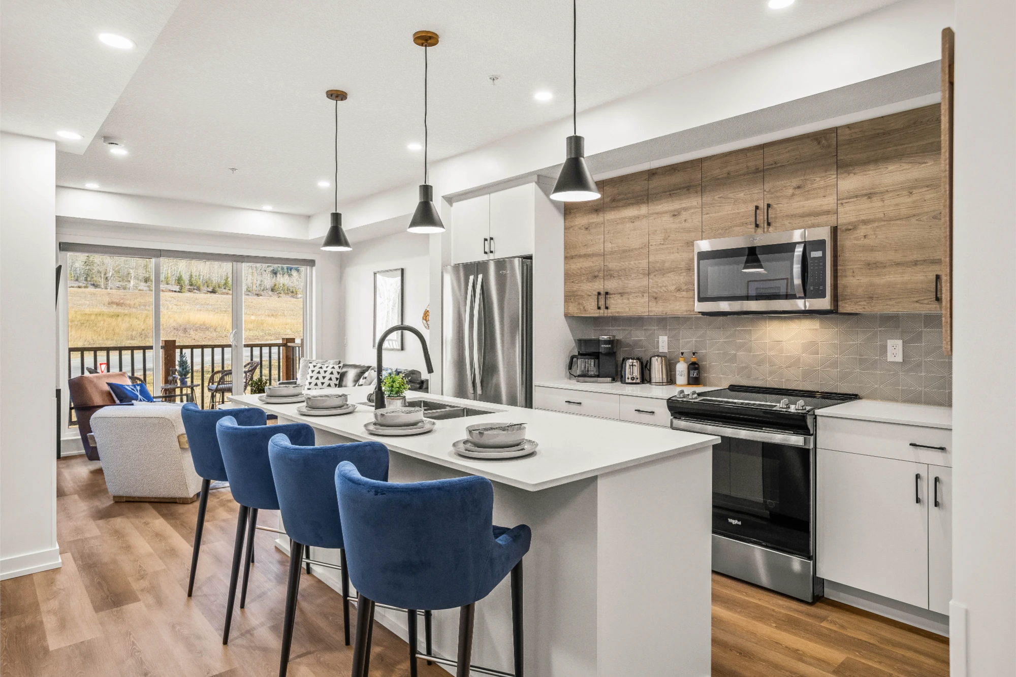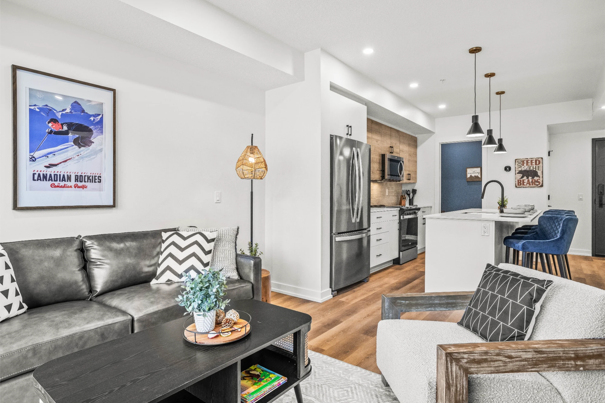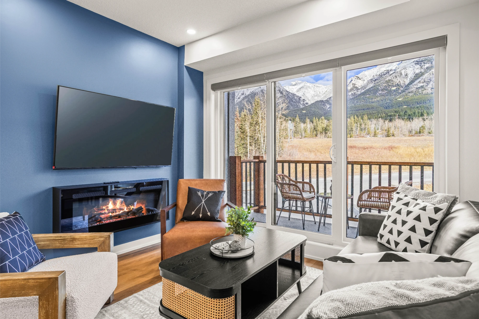 Perfect for couples or small groups looking to unwind in the heart of Canmore. With warm finishes, an inviting fireplace, and an open living area that extends to a private balcony, this suite feels like a true mountain retreat. Take in the breathtaking views, enjoy a slow morning coffee, or relax after a day exploring Banff and the Bow Valley.