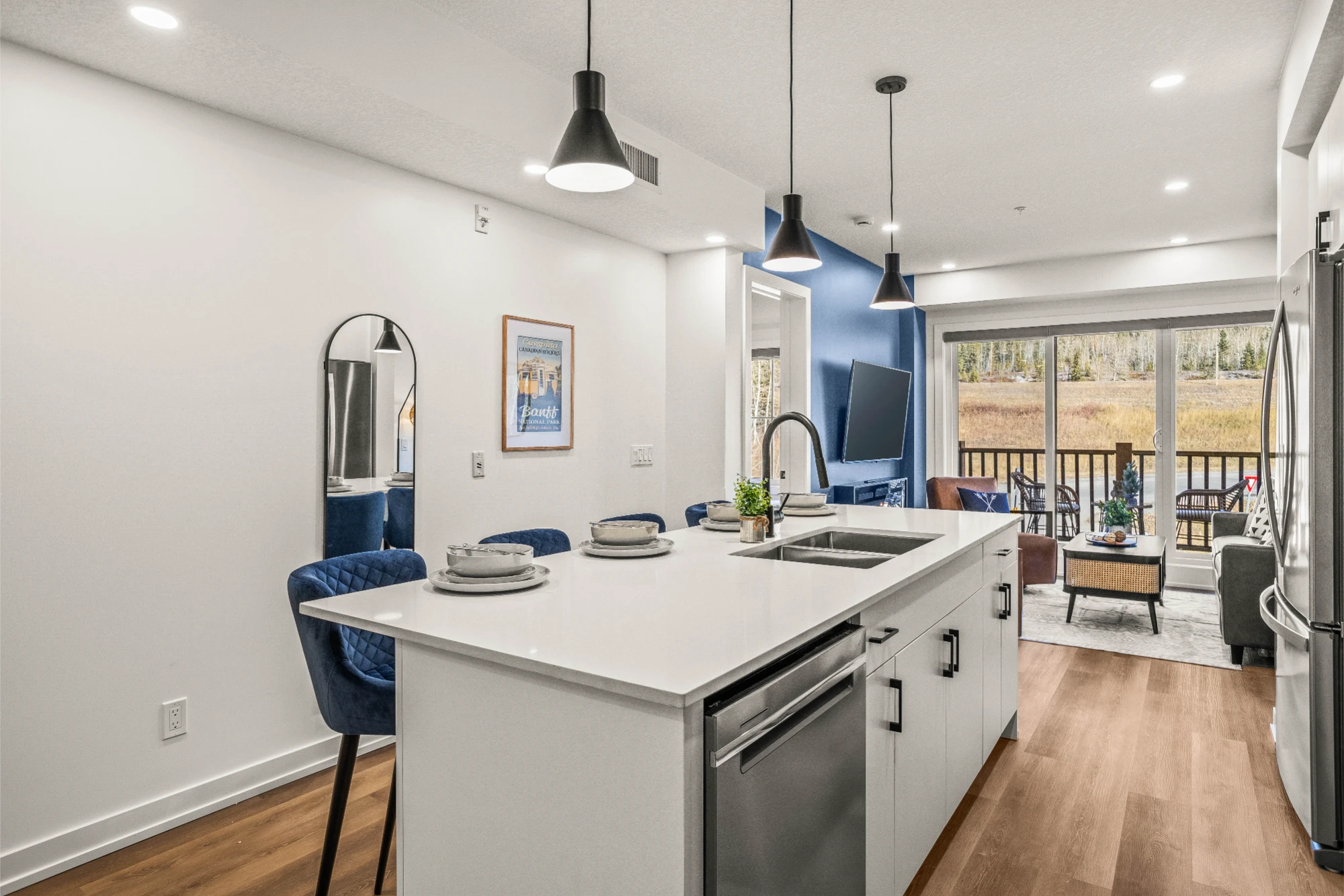 We’re at 1717 Mountain Avenue, minutes from downtown Canmore — close to restaurants, shops, and hiking trails.