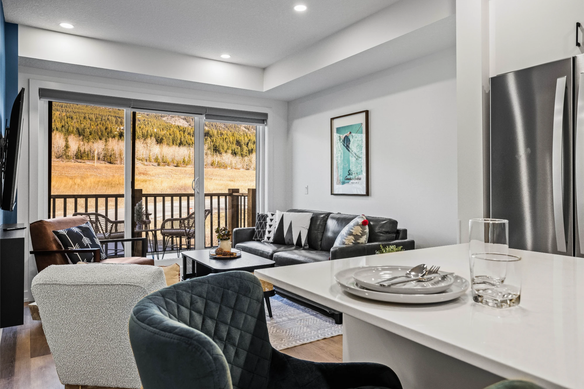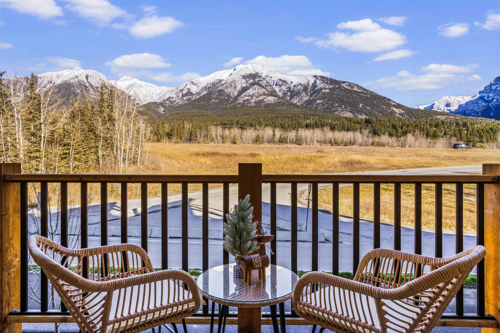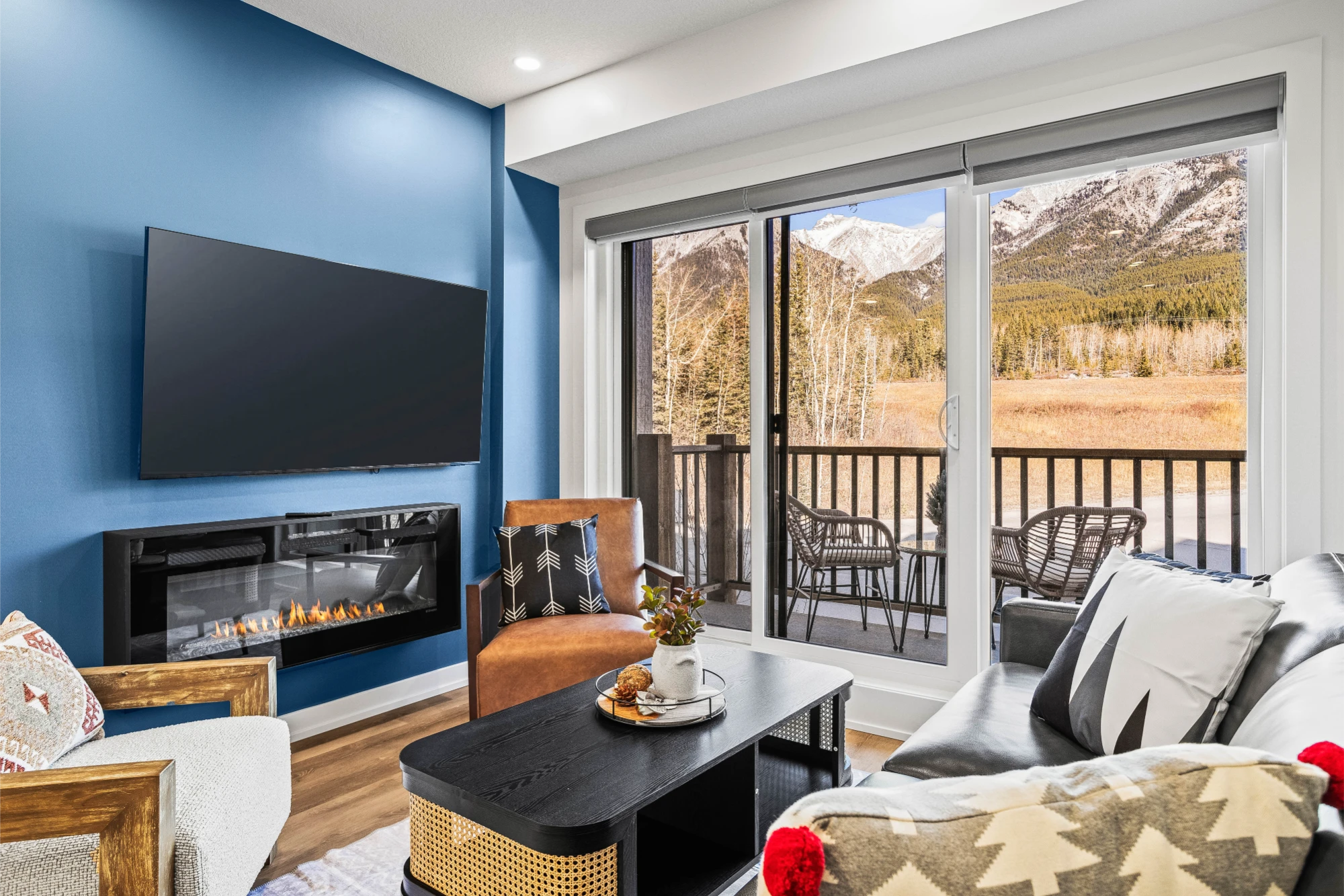 Perfect for couples or small groups looking to unwind in the heart of Canmore. With warm finishes, an inviting fireplace, and an open living area that extends to a private balcony, this suite feels like a true mountain retreat. Take in the breathtaking views, enjoy a slow morning coffee, or relax after a day exploring Banff and the Bow Valley.