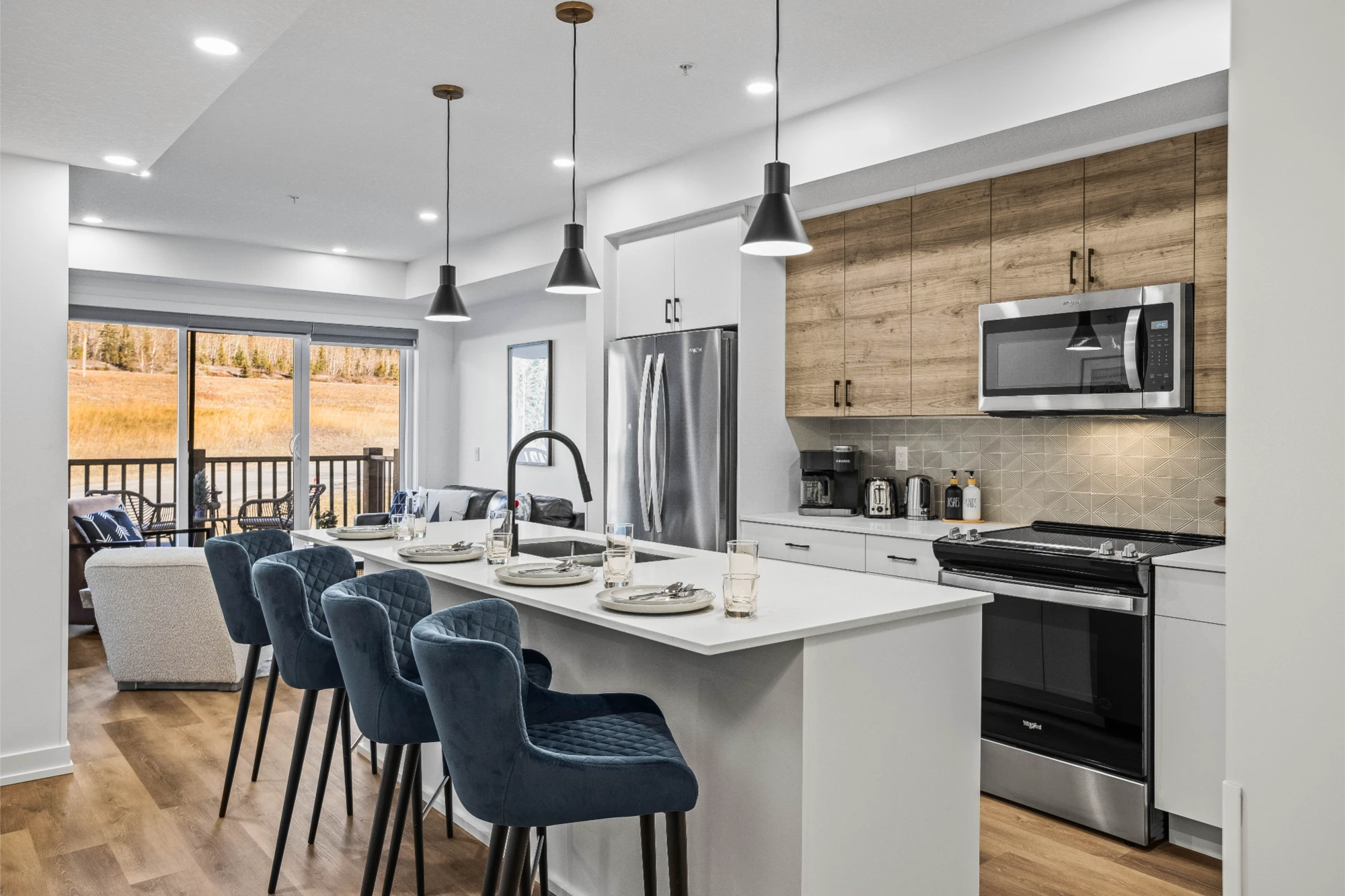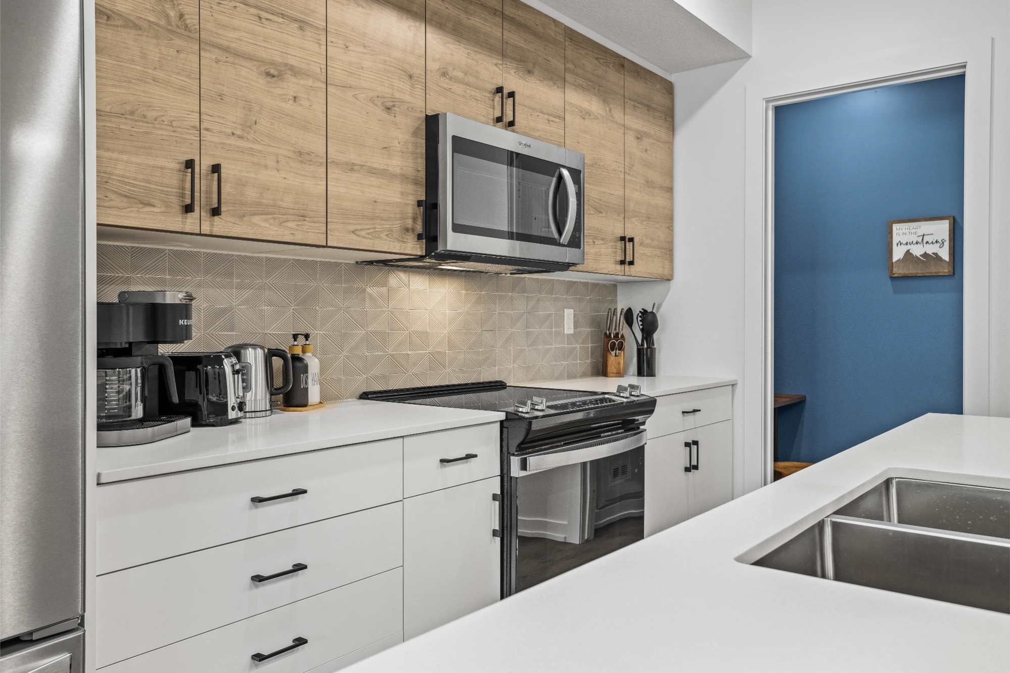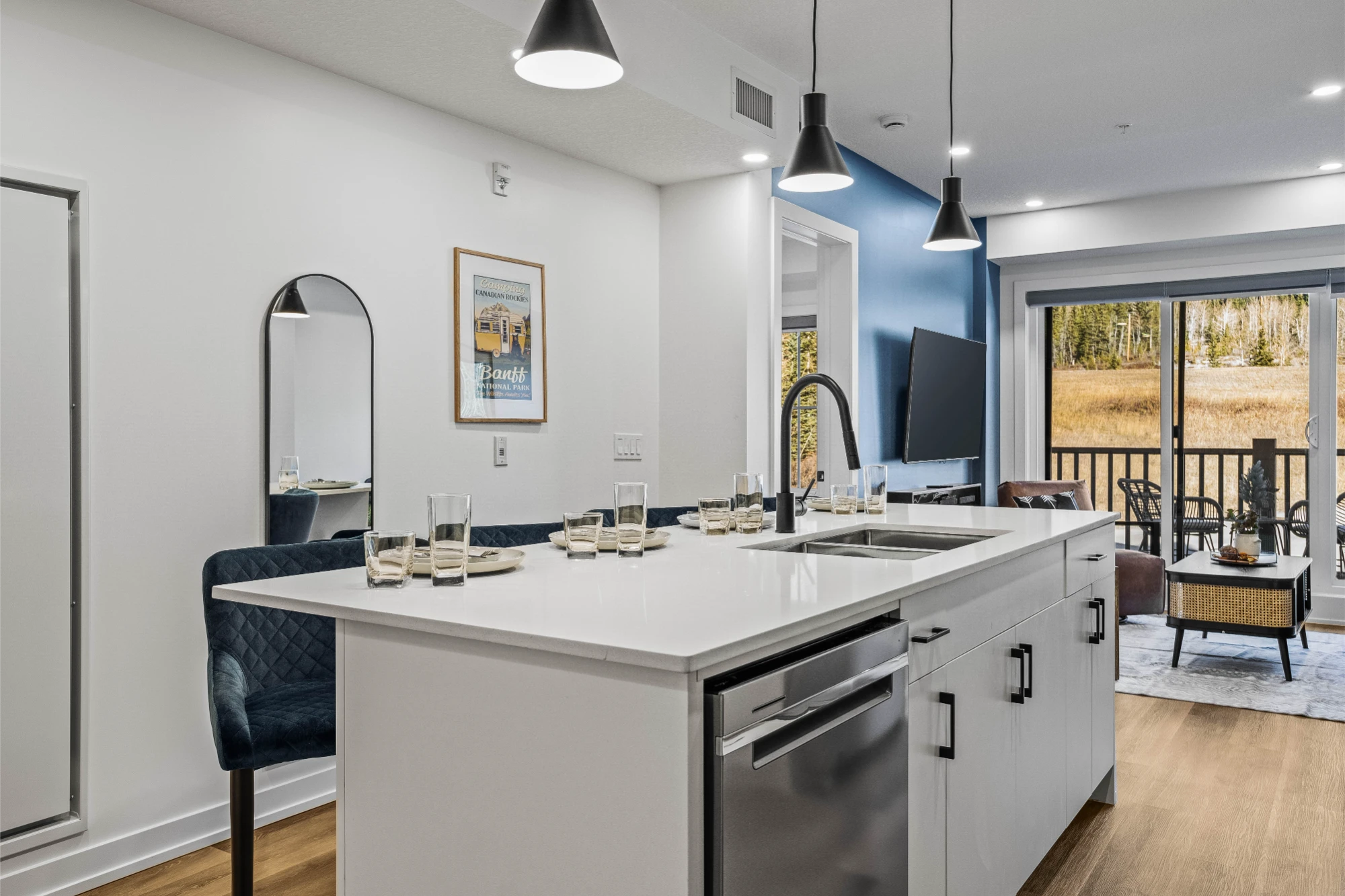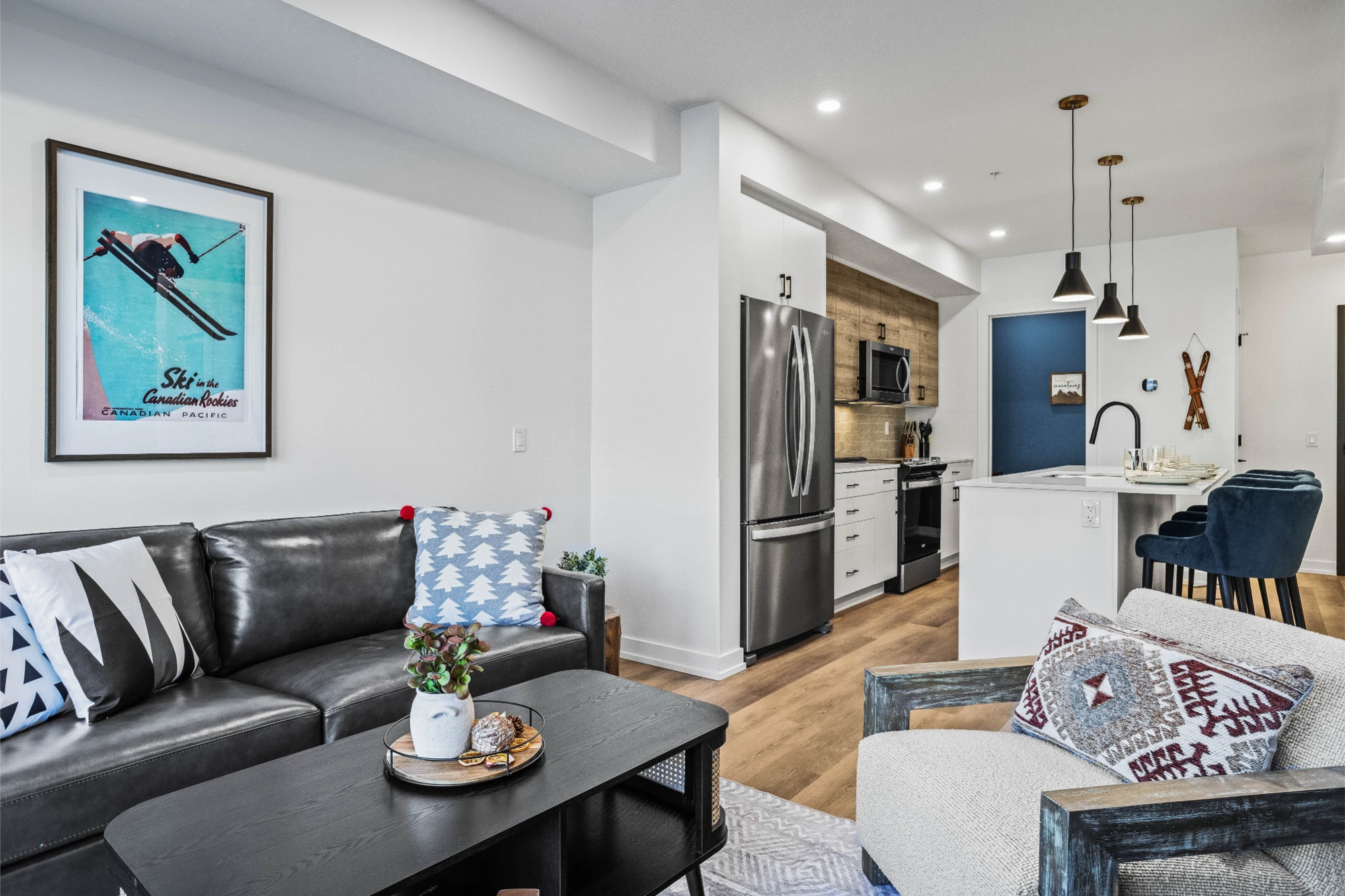 Perfect for couples or small groups looking to unwind in the heart of Canmore. With warm finishes, an inviting fireplace, and an open living area that extends to a private balcony, this suite feels like a true mountain retreat. Take in the breathtaking views, enjoy a slow morning coffee, or relax after a day exploring Banff and the Bow Valley.